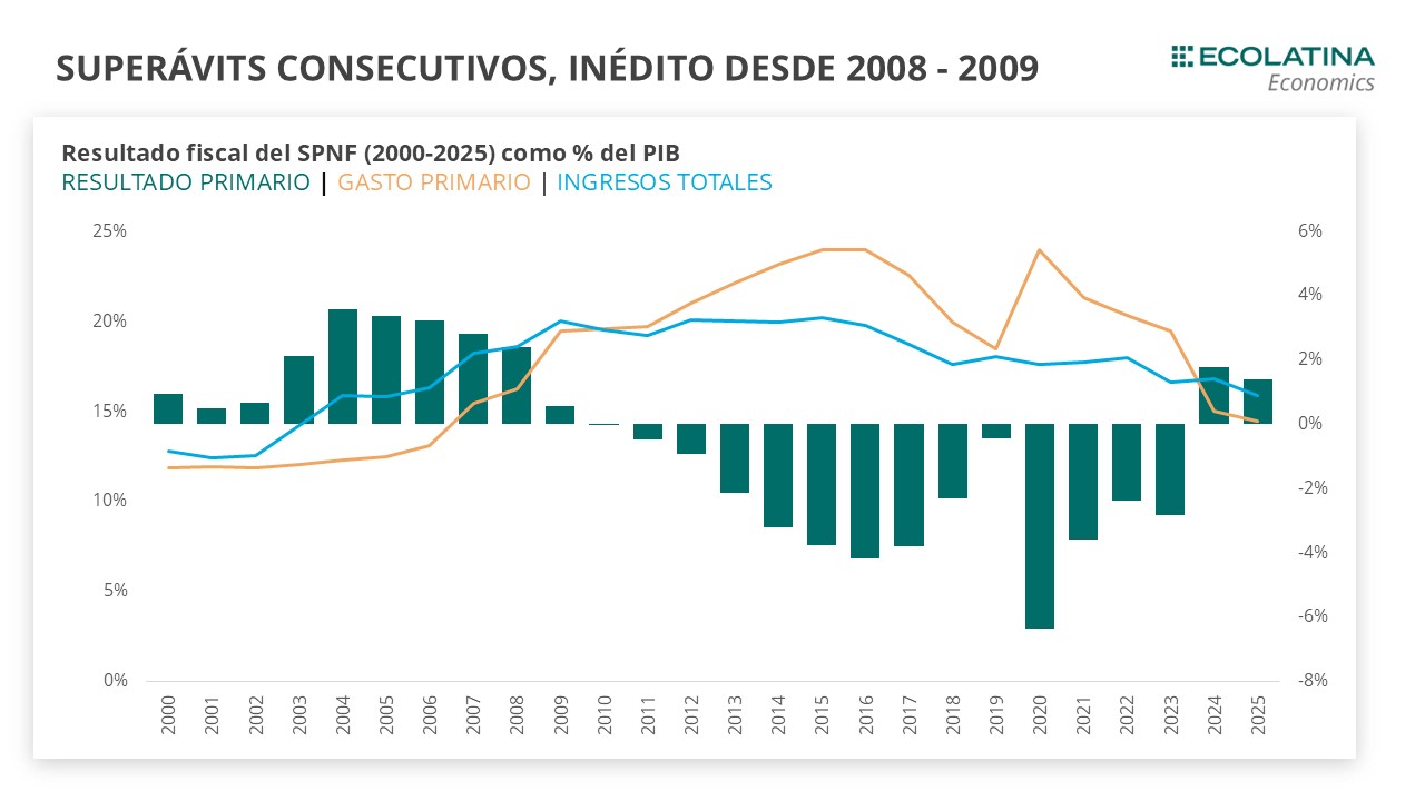 Con el desempeño de noviembre, prevemos un crecimiento promedio apenas por encima del 4% para 2025, en gran medida por el arrastre estadístico de 2024, considerando que la actividad se mantendría prácticamente estable. De este modo, el 2025 no aportaría un arrastre estadístico relevante para el 2026.