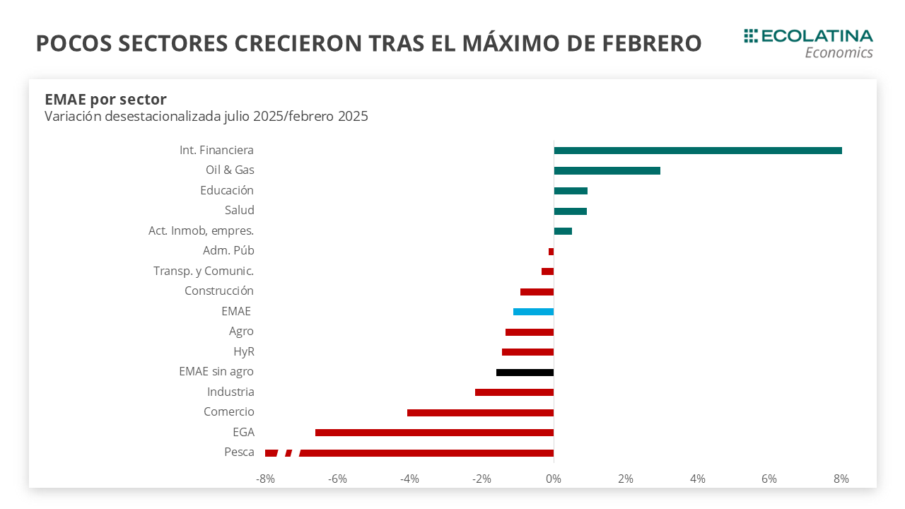 Además, la región es muy sensible a la caída de la demanda interna, ya que al aglomerar a los grandes centros urbanos del país -es hogar del 66% de la población-, tiene una estructura industrial y de servicios. Así fue como en 2024, todas las provincias de la región pampeana presentaron caídas, exceptuando Santa Fe y Entre Ríos que crecieron marginalmente.