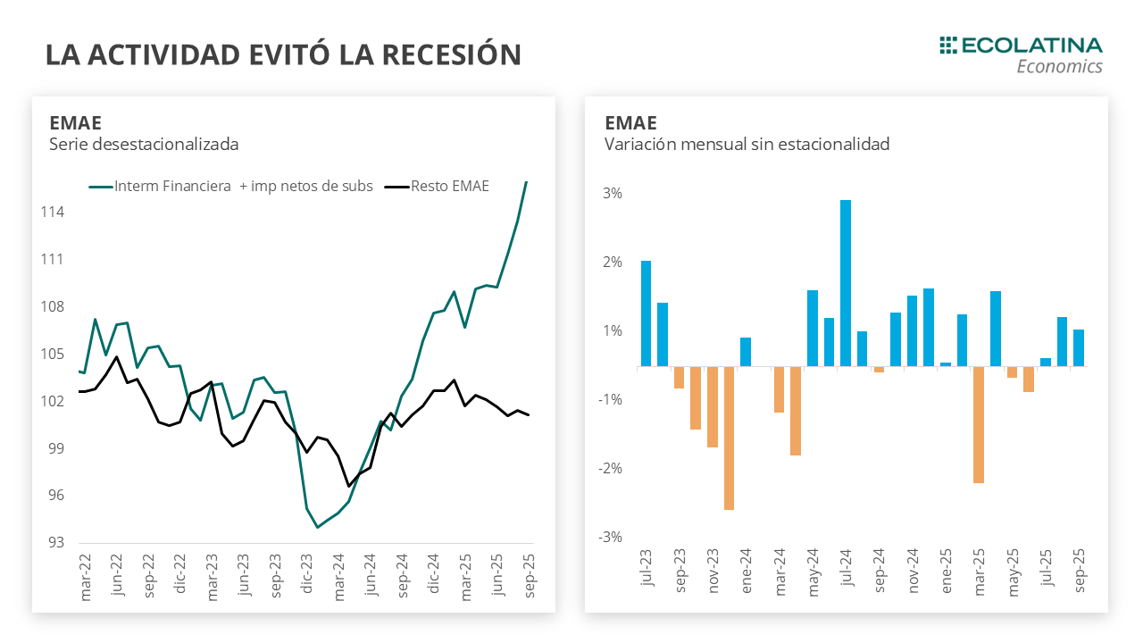 Nueva baja en la recaudación. En noviembre, la recaudación nacional alcanzó los $15,5 bn, lo que representa una caída real de 8,8% i.a por cuarto mes consecutivo y la más pronunciada hasta el momento. La baja se explicó por Comercio Exterior: el aumento del 43% en los derechos de importación no compensó la caída del 69% en los derechos de exportación por la baja transitoria de retenciones, que adelantó la liquidación. También cayó la recaudación ligada a la actividad (-5,3% i.a.), aunque la comparación anual sigue afectada por la alta base de 2024 (impuesto PAIS e ingresos extraordinarios). De este modo, en el acumulado 2025 la recaudación se encuentra 1,1% por debajo de 2024, y casi 7% por debajo de la recaudación en 2023. Esa merma en la recaudación respecto al año previo se explica por la caída en la recaudación impositiva (-6% i.a. real) que no llega a ser compensada con la suba de comercio exterior (+1,3% i.a. real) y en Seguridad Social (+15,3% i.a. real), debido al aumento en la remuneración bruta promedio.