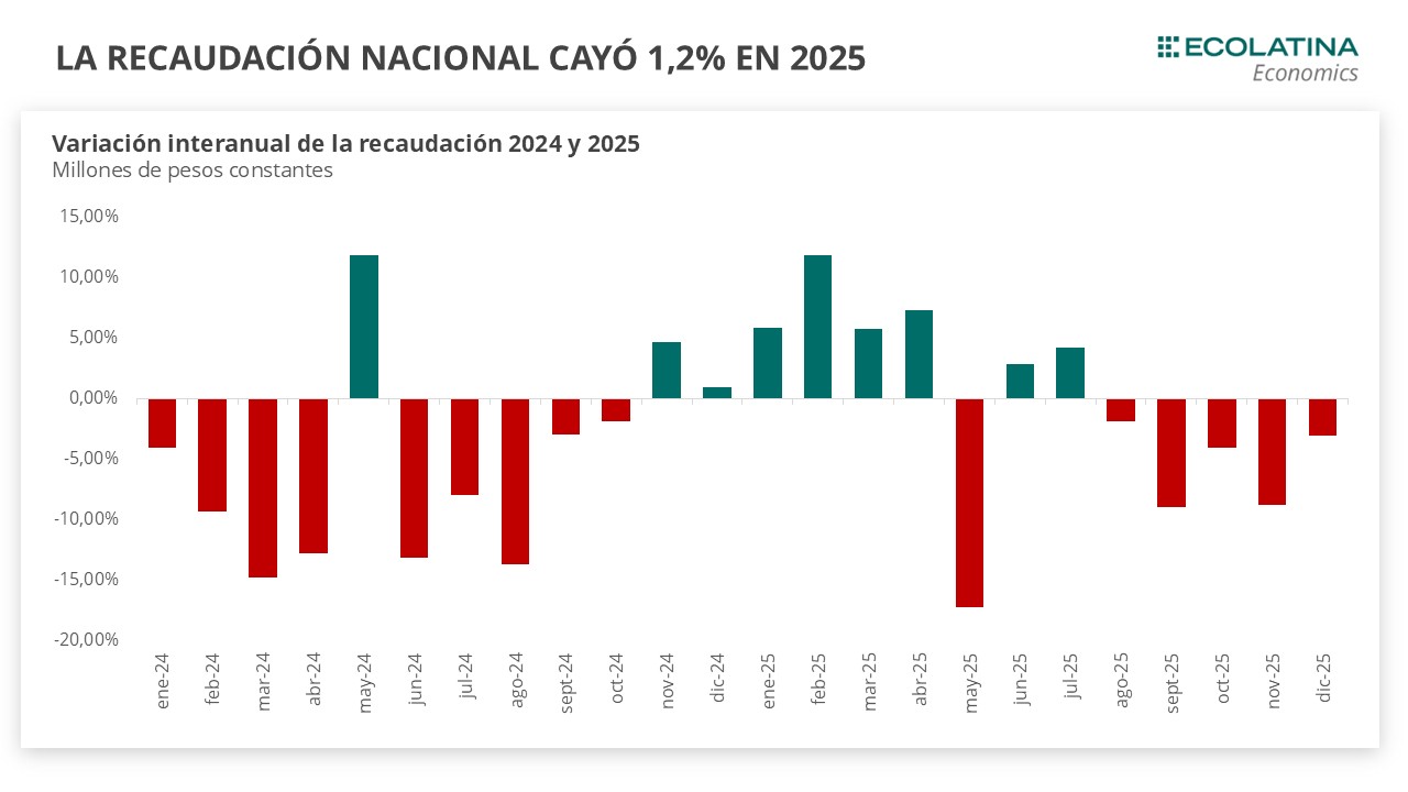 Respecto a la industria, la producción de automóviles cayó 3,4% s.e. en diciembre, tras haber caído de 8,2% s.e. en noviembre, posicionándose 30,4% por debajo del mismo mes del 2024. Por último, el patentamiento de autos cayó 0,4%, siendo el quinto mes de bajas consecutivo. Por el lado de la construcción, los despachos de cemento presentaron un leve repunte de 0,9% s.e. en diciembre (-1,2% i.a.), tras haber caído 4,7% en noviembre.