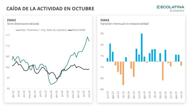 Si bien las elecciones legislativas y la incertidumbre que generan como la ayuda de EEUU (que, hasta ahora, pareciera ser la intervención directa en el mercado local vendiendo dólares y un eventual swap por parte del Tesoro estadunidense), el hecho de que la economía se mantenga en un escenario de mayor volatilidad cambiaria no está implicando hoy en día un traslado significativo a precios. Parte de esto no sólo se debe al rol disciplinado de una mayor apertura comercial, sino que también está asociado a la restrictiva política monetaria del Gobierno, que junto a un ancla salarial activada (paritarias que todavía esperan una inflación mensual que “arranque con 1”) le ponen un límite a la demanda agregada.