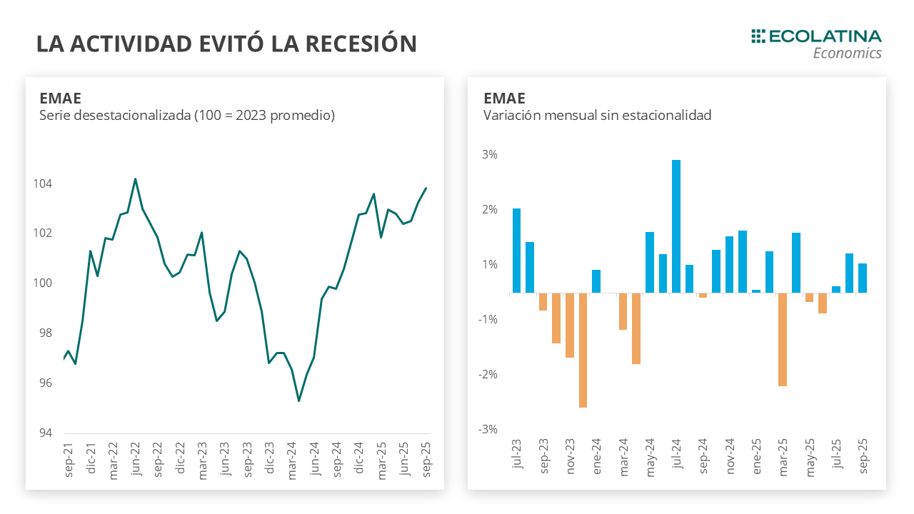 La provincia de Buenos Aires concentra un tercio de la producción agrícola nacional y es el bastión industrial del país, al aportar cerca del 50% del total de la producción manufacturera argentina. En PBA hay industria automotriz, siderúrgica, farmacéutica y agroindustria, además de producción agroganadera. Por lo tanto, la caída de la actividad industrial en el último tiempo fue particularmente relevante allí. En este sentido, el empleo privado registrado de la provincia se redujo en casi 40 mil puestos de trabajo desde el camio de Gobierno y su PBG cayó 3% en 2024. Esta dinámica puede haberse reflejado en las elecciones legislativas del domingo pasado, donde el triunfo de Fuerza Patria se concentró en el conurbano (es decir, las regiones más industriales), y LLA predominó al interior de la provincia.
